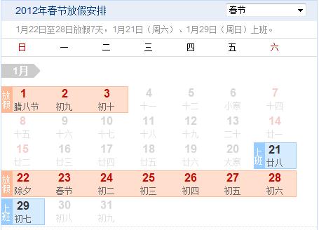 2012年春节放假通知